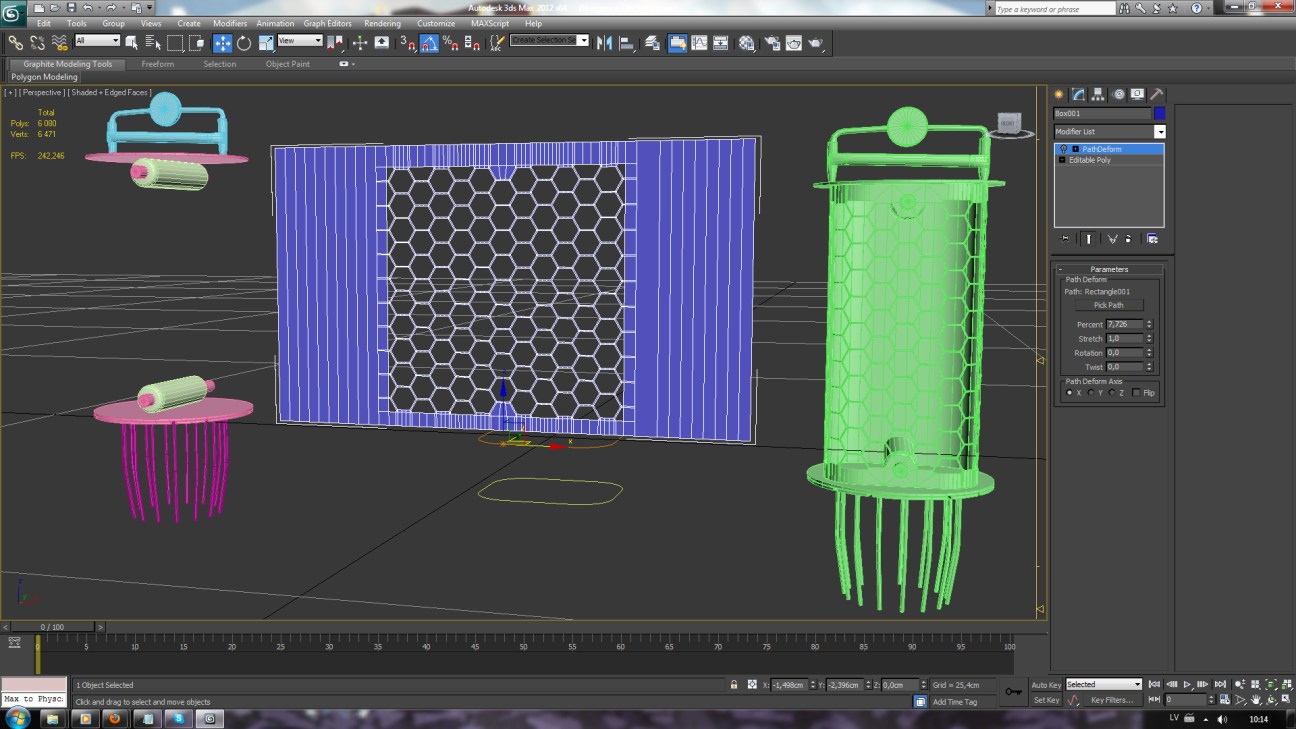 Main construction was made from standard primitives, that were modified with “Edit Poly”.