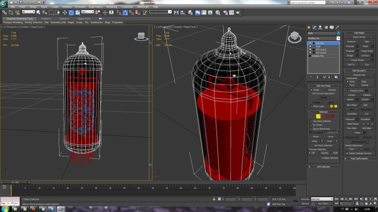 The bulb was a simple cylinder primitive with a few chamfers, extrudes and FFD’s. In the end, I removed some unnecessary polygons from back of the bulb, to decrease rendering time.