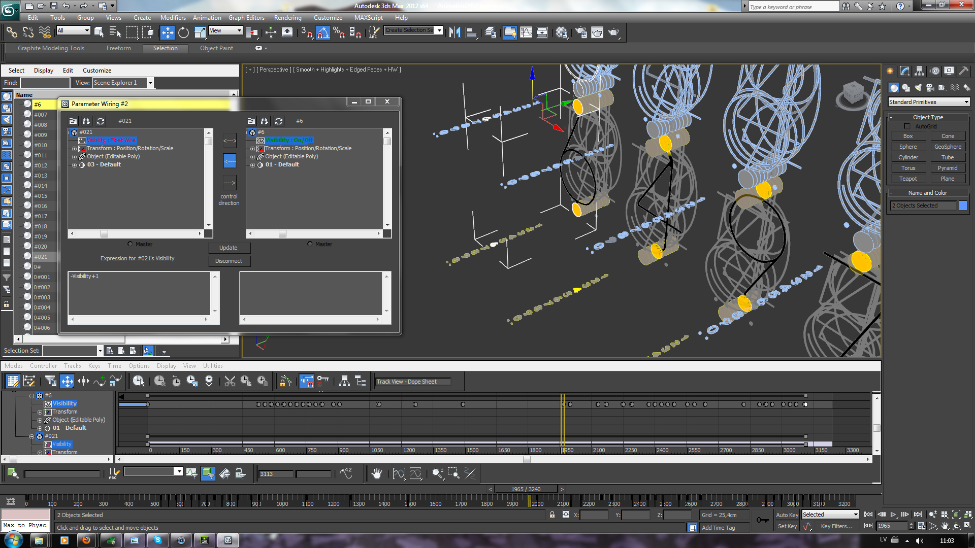 So far I only animated only glowing digits, but now I had to animate regular digits and to do that, I used “Parameter Wiring”. I wired glowing digit’s visibility(on/off) track, to its regular digit’s visigility(on/off) track.
