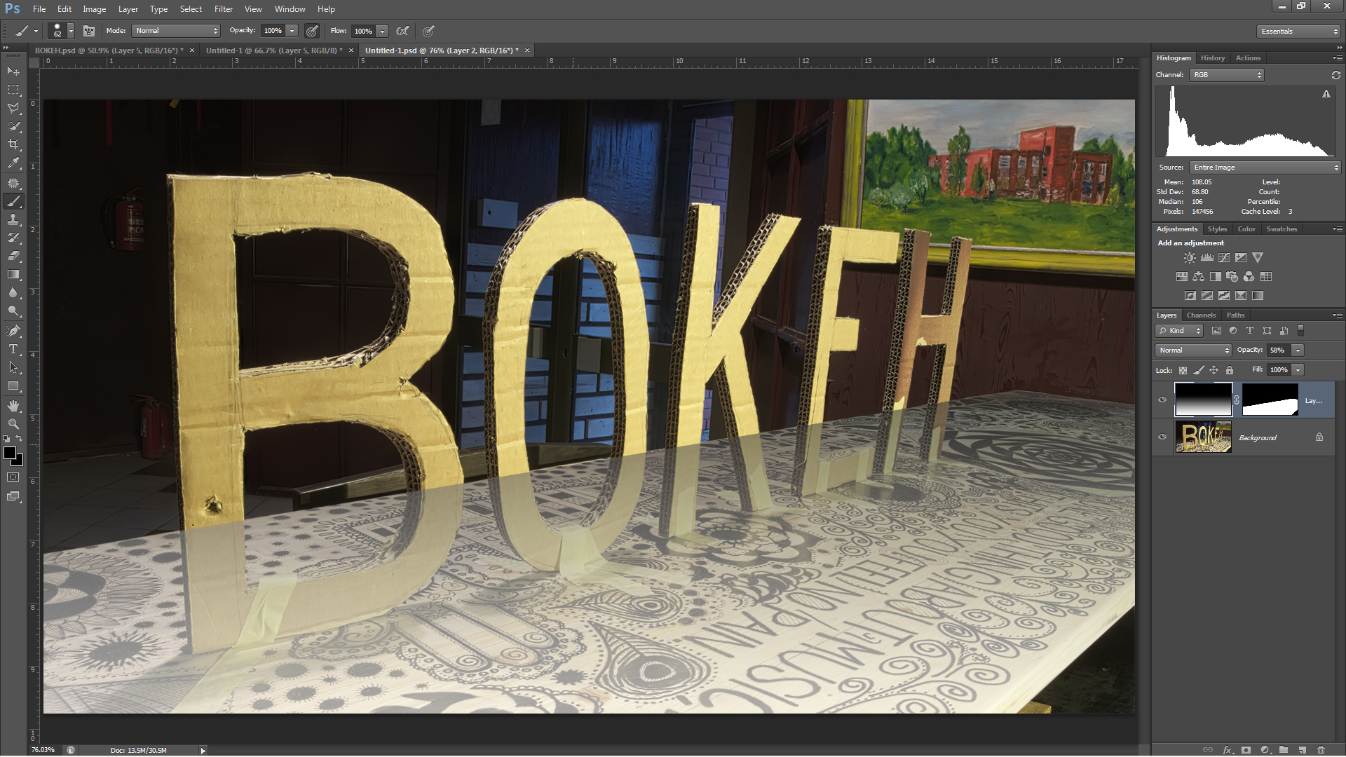 Next, I added layer mask, to cut out bar counter from the background. To make it easier, I decreased gradient opacity of this layer.