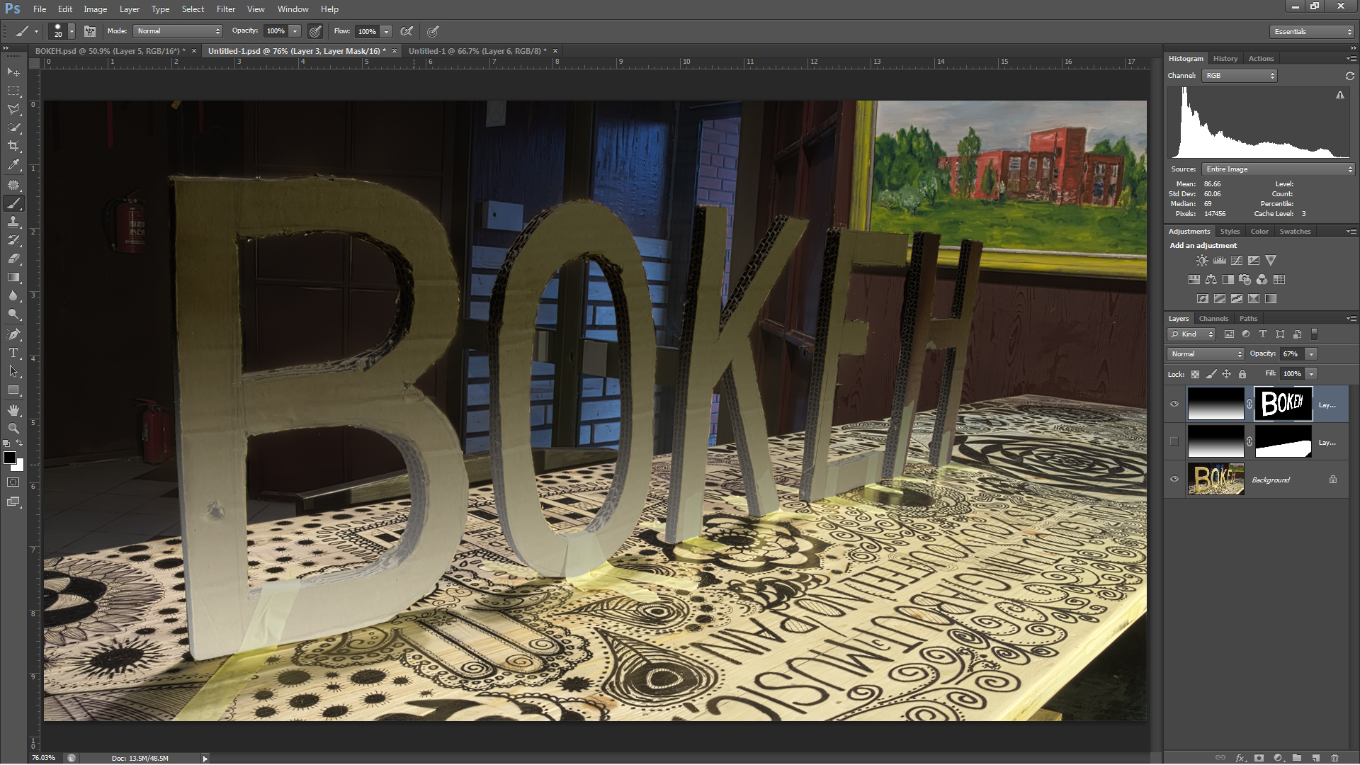 After the base was done, I created new layer and masked out the letters. In this case I needed only one layer, but in many cases, it is necessary to create separate layer, for each object.